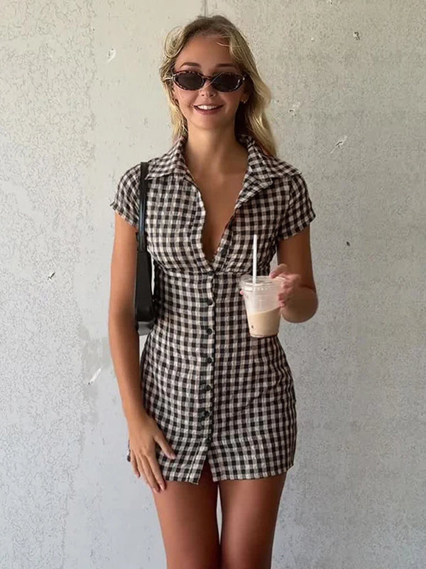 This chic plaid mini dress offers a stylish solution for any summer event. Its flattering fit and classic design ensure you always look your best, whether at a casual brunch or a summer party.